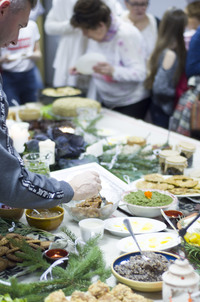 - Przekazywałam na warsztatach moją tradycję rodzinną i tą historyczną ze staropolskiej kuchni wileńskiej – tłumaczyła Anna Rumińska – Pilnowałam, żeby składniki potraw pochodziły tradycyjnie z lokalnych, czystych gospodarstw, by nie używać produktów masowych, np. gryki i prosa z glifosatem, tłuszczów utwardzonych i cytrusów. Dzięki pomocy lokalnych rolników, którym serdecznie dziękujemy, używałyśmy czystych zbóż, warzyw i olejów. Tradycja to nie tylko odtwarzanie receptur, ale przede wszystkim lokalne, czyste składniki. To jest ważniejsze niż przepis i subiektywny smak. Uczciwy produkt nie wymaga złożonej obróbki. Prostota i wysoka jakość czystych, lokalnych składników jest istotą kuchni kresowej i jej tradycji, do której wnosimy dolnośląską pamięć, talent i zapał.